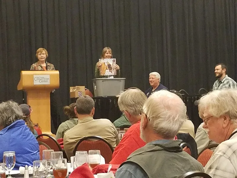 Saturday lunch raffle -- almost everyone a winner. Roberta Armstrong (Board member and ESCAPE 2017 chair) and assistant Terry Miller (incoming Board member)