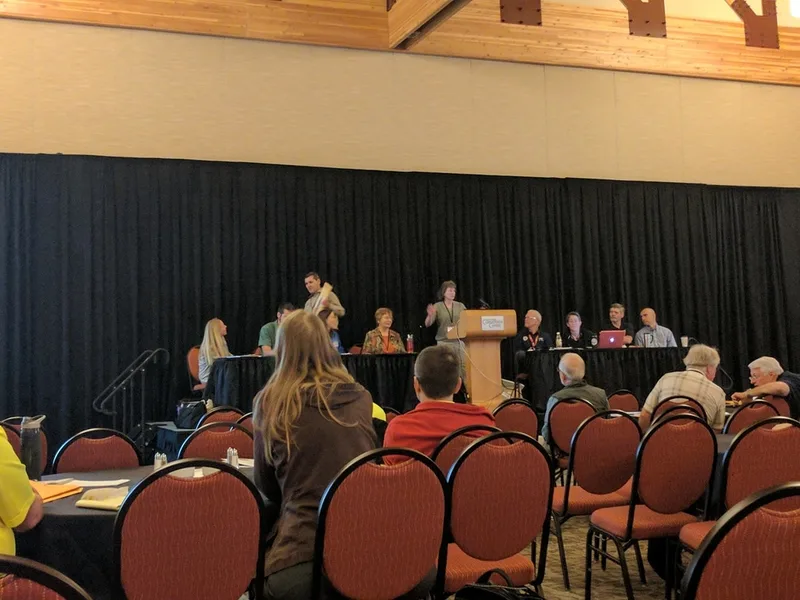 Saturday morning annual meeting, Board Chair Mary Walker presiding