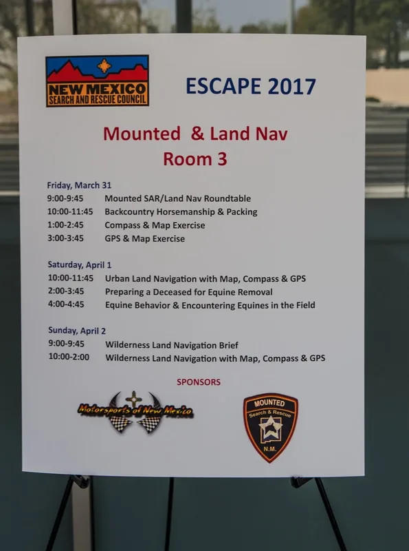 ESCAPE 2017 was held at the Las Cruces Convention Center from March 31 - April 2. Almost 200 SAR volunteers from 30 New Mexico teams attended this year’s event either as participants or instructors or both! We had 34 instructors help us sharpen our SAR skills and learn new ones over the three-day event. And there were a number of guests from other SAR-related organizations, too! The weekend’s events left us with 34 new Field Certified volunteers. We had 11 individuals pass their HAM exam and achieve their Technical License and another three upgrade to the General Class License. Congratulations to all.