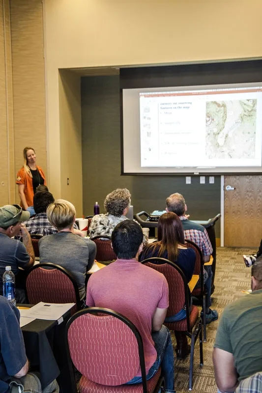 MIchaela Buenemann (NMSARC Board) teaching Land Navigation