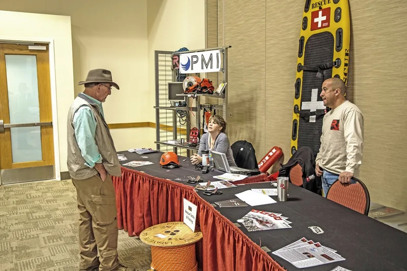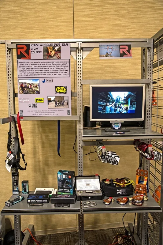 Rescue Tactics and Training from Albuquerque offered a variety of technical SAR gear. Exhibits included Civil Air Patrol, NMSARC Communications and the NMSARC Mapping Program, one of our best kept secrets. NMSARC also had a merchandise table; this year's black polo with an embroidered NMSARC logo was popular, along with bumper stickers and patches.