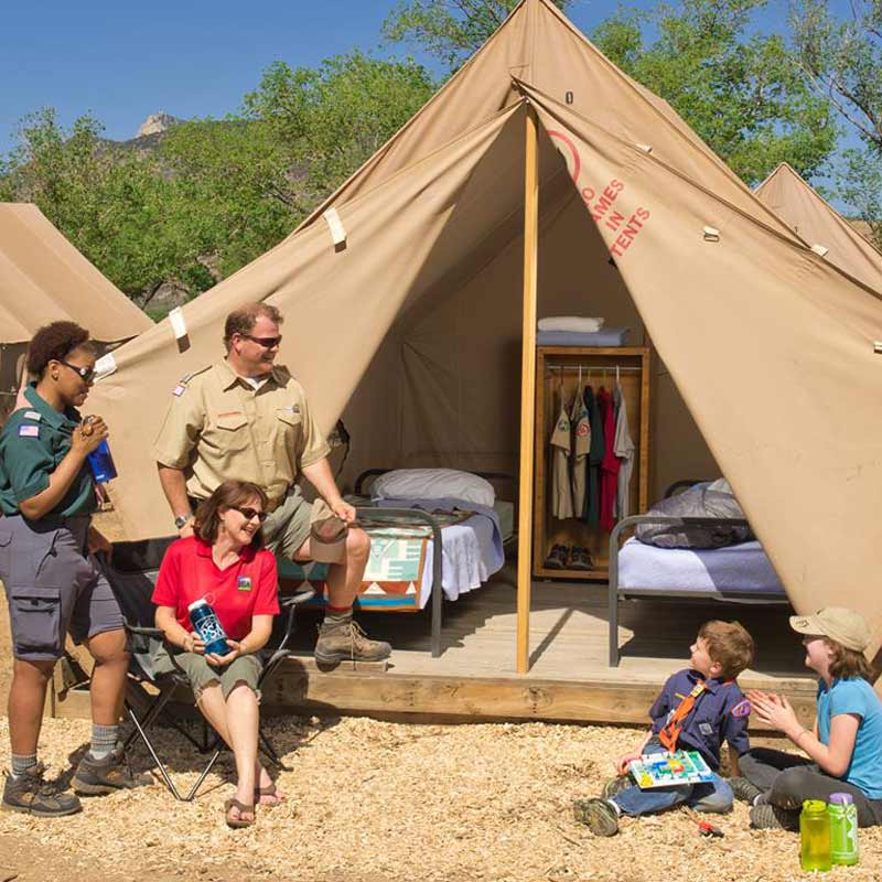 Tents include 2 twin cots with mattresses, electricity, a light, a chair, and a storage locker. Philmont’s spectacular shower houses are made up of self-contained private stalls which include a toilet, shower, sink, and mirror. Bring your own bedding (sheets or sleeping bag/pillow) and towel!